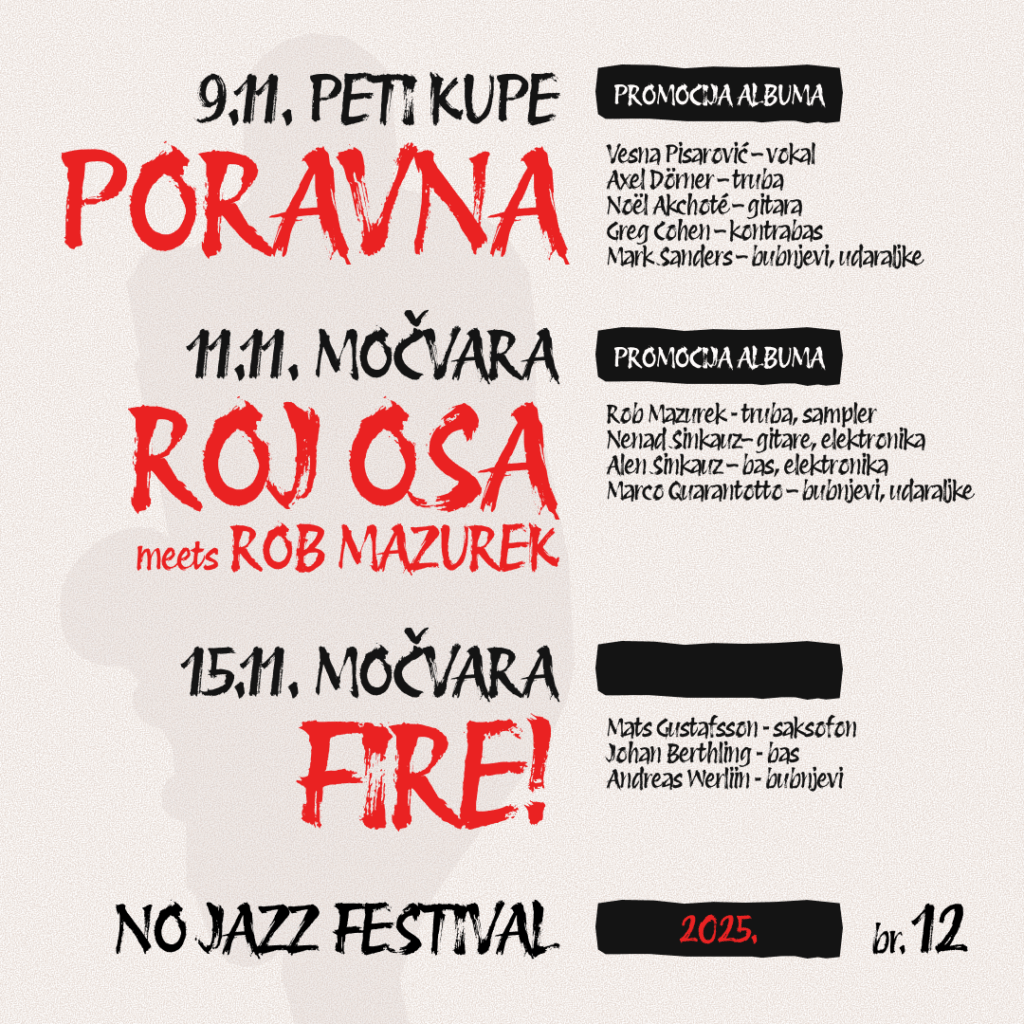 Uz već najavljeni trio Fire! programu ovog festivalskog izdanja pridružit će se kvintet Vesne Pisarović, kao i već poznata suradnja Roja Ose i čikaškog trubača Roba Mazureka.