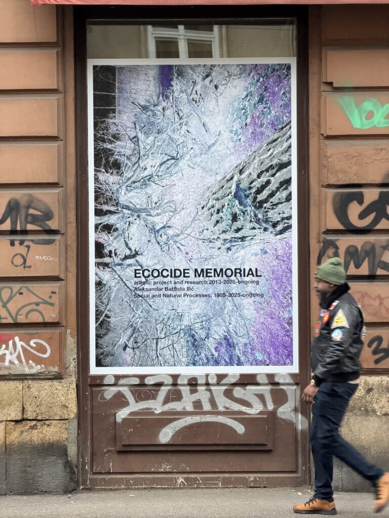 U javnom prostoru zagrebačke Ilice, od Frankopanske ulice do Britanskog trga, otvorila se velika izložba Ekocid Memorijal, dugogodišnjeg istraživačkog i umjetničkog projekta postdisciplinarnog umjetnika Aleksandra Battiste Ilića, koji se kontinuirano razvija od 2013. godine do danas.
