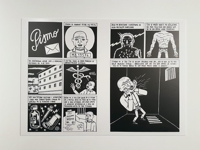 Odmah na ulazu u Pogon Jedinstvo, gdje se izložba održava od 18. studenoga pa sve do petka 25. studenog, posjetitelje čeka ilustrirani rječnik zatvorskog slenga. Rječnik je djelo bivših osuđenika, a svoje nevoljno stečeno znanje i naučene tehnike preživljavanja sročili su kreativno, sočno i bolno iskreno. U slikovnom pogledu radi se o djelu umjetnika Nikole Koraća i Branka Teševića.