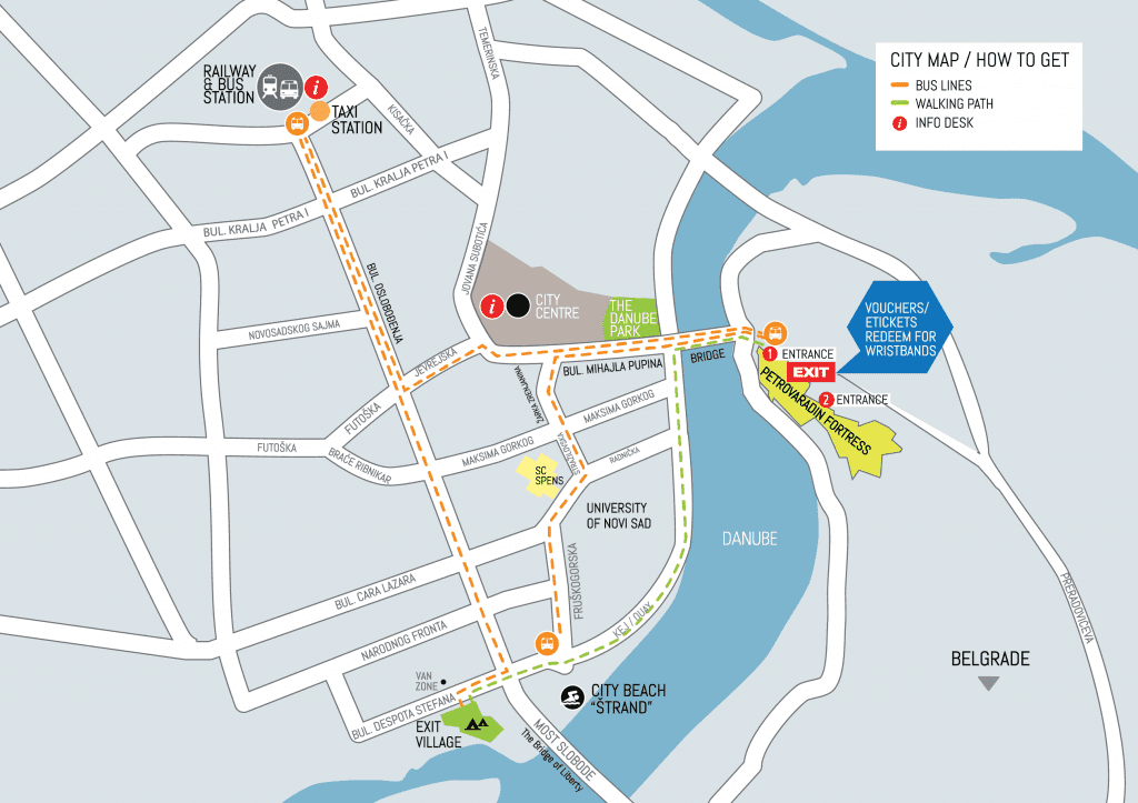 Ono što je za početak dobro znati jest da je Novi Sad u globalu jeftin grad, a jednako tako ni Exit, premda obiluje engleskim bogatašima, ne spada u kategoriju skupih festivala. Iskustva ljudi koji su na Exitu već bili pokazuju kako u gradu možete pojesti kvalitetan topli obrok, popiti piće i za to ne izdvojiti više od šezdesetak kuna. Cijene unutar festivalskoga prostora nešto su više od onih u ostatku grada pa i u festivalskom kampu, ali bi i dalje trebale biti jednake ili čak niže od onih na INmusicu. Bitno je tu spomenuti da se plaćanje u festivalskom prostoru obavlja preko OTP kartice koju ćete podignuti na za to predviđenim mjestima, ali i da se ne zaletite i ne stavite sve dinare na nju jer ćete finu papicu u Foodlandu morati plaćati gotovinom, a ista će vas sudbina zadesiti i ako budete kupovali cigarete. Iako ne volite račune i smatrati ih smećem, onaj prve uplate obavezno sačuvajte jer u protivnom nećete biti u mogućnosti zadnji dan festivala preostale novce (ako vam uopće išta ostane) ponovno pretvoriti u gotovinu. Što se pak tiče prijevoza, taksiji su dostupni na svakom koraku i daleko su jeftiniji od onih u Hrvatskoj. Ima i autobusnih linija, a iskusniji kažu kako se uz malo volje i želje cijeli grad i bez prevelikih problema može propješačiti. Odlučite li se za tu opciju, osim zbog vrućine, ni zbog čega drugoga nećete požaliti. Novi Sad lijep je, inače mirniji ali u vrijeme Exita užurbani grad, prepun susretljivih ljudi koji će vam izaći ususret i uputiti vas ako vam zatreba pomoć. Dakle, koju god opciju izabrali, u win-win ste situaciji.