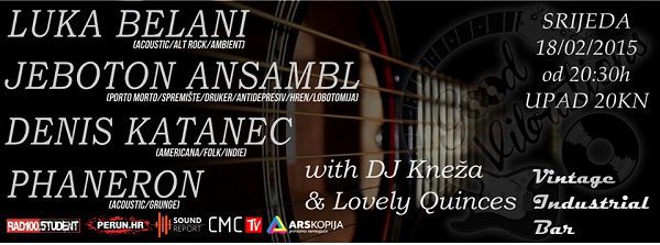 Preko 60 izdanja bilo je potrebno da na red dođe i prvi “ištekani” Good Vibrations. U srijedu će u Vintageu nastupiti Luku Belani, Jeboton Ansambl, Denis Katanec, te za ovu priliku akustični bend Phaneron. Za DJ pultom će se ovom prigodom Kneži pridružiti i Lovely Quinces. Goste Vintagea očekuje zanimljiva večer u znaku kantautora, uz iznimku akustično-elektroničkog Phanerona.