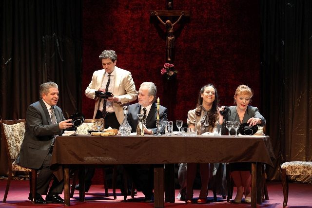 Homoseksualnom paru Georgesa (Željko Königsknecht) i Albina stiže najava Georgesova sina Filipa (Ivan Đuričić) da se je odlučio oženiti te da im u posjet dolaze roditelji djevojke Andreje (Ana Maras) koji su ujedno začetnici stranke NKSS, odnosno Nacionalno kršćanske seljačke stranke. Od tog trenutka u ovoj gay obitelj nastaje kaos; svoje šareno utočište sa šljokicama, pozlatama i falusnim predmetima moraju preokrenuti u vjerodostojan dom koji odašilje poruku vjere u tradiciju, religiju i “ispravne” rodno-spolne uloge. Nekako do tog trenutka predstava funkcionira kao koherentna cjelina koja doista progovara o idejama poput ljubavi, povjerenja i zajedništva u obitelji koja se po tom pitanju ničime ne odvaja od drugih obitelji. Međutim, na razini čistoće predstave, tu tek nastaje kaos. Što se više približavamo kraju, svjedočimo sveopćem raspadu na sceni te likove koje smo dotad mogli nesmetano pratiti i pronaći im vjerodostojnu motivaciju, sada ne možemo raspoznati u silnom žamoru replika, pokreta te kakofoniji koja šteti scenskoj cjelini. I ovo se ne može ne primijetiti.