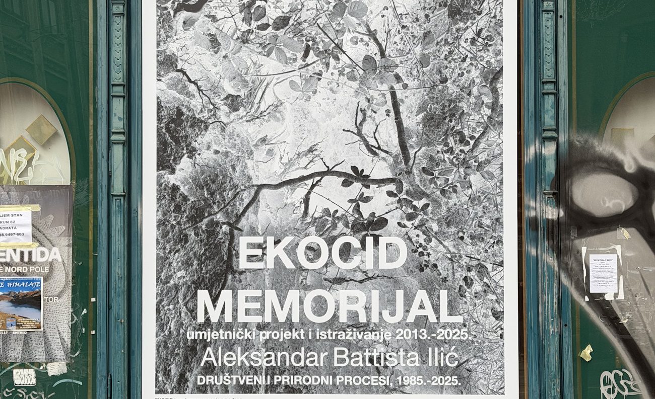 U javnom prostoru zagrebačke Ilice, od Frankopanske ulice do Britanskog trga, otvorila se velika izložba Ekocid Memorijal, dugogodišnjeg istraživačkog i umjetničkog projekta postdisciplinarnog umjetnika Aleksandra Battiste Ilića, koji se kontinuirano razvija od 2013. godine do danas.