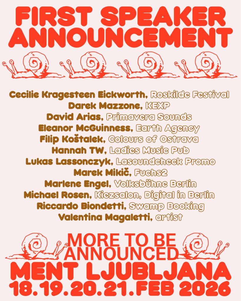 Festival će se održati od 18. do 21. veljače u Ljubljani, a glazbena imena i govornici koji će biti na MENT-u su sljedeći.