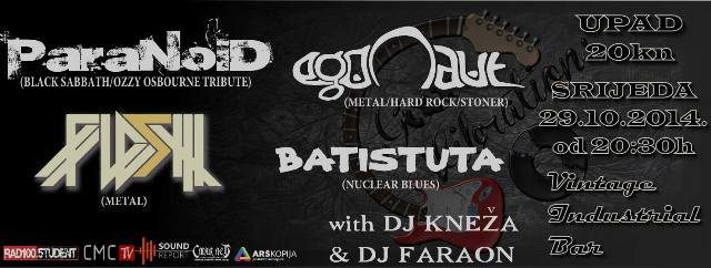 Nakon prošlotjednog spektakla predvođenog ukrajinskim stonerima Stoned Jesus, ova će srijeda proteći u znaku Black Sabbatha, a posebni gosti su Šveđani Egonaut, bend koji je pobijedio na velikom natjecanju Livekarusellen! Uz navedene, za žestoku atmosferu pobrinut će se zagrebački bendovi Flesh i Batistuta.