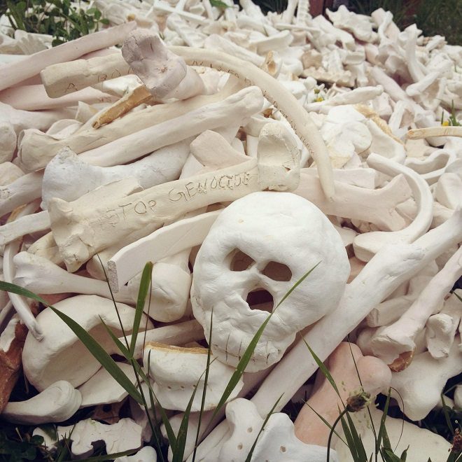 Stravični razmjeri genocida počinjenog u Sudanu, Demokratskoj Republici Kongo, Somaliji i Burmi istaknuti su u umjetničkoj instalaciji One Million Bones 2013. godine u SAD-u. Milijun kostiju bilo je poredano ispred travnjaka vašingtonskog nacionalnog parka između memorijalnog centra Abraham Lincoln s jedne, i Kapitola s druge strane.