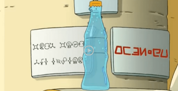 Ako ste pratili Futuramu vjerojatno ste primijetili da se na natpisima i raznim papirnatim dokumentima često pojavljuje izvanzemaljsko pismo. Ono nije sporadičan skup neobičnih znakova već svaki znak odgovara jednom slovu engleskog alfabeta. Ako se želite igrati, skinite aplikaciju Alienese Decoder na svoj mobitel i započnite maraton Futurame tijekom kojeg ćete prevoditi sve natpise na izvanzemaljskom na koje naiđete. Na priloženoj slici prijevod natpisa glasi “Don’t drink the emperor”, a svi koji se sjećaju te epizode znat će zašto je taj natpis važan. Nepreveden je ostao jedino natpis na Leelinoj narukvici, nagađa se o mogućnosti još jednog izvanzemaljskog jezika. U Futurami su zasad prepoznata dva izvanzemaljska jezika, prvi je već spomenut, a drugi je baziran na matematičkom principu koji je poprilično kompliciran (dešifrirajte ga sami).